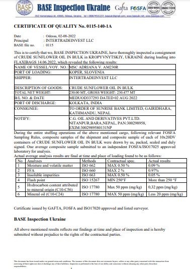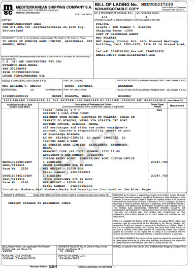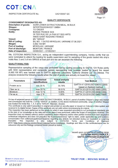 Supply of agricultural products to consumers (sunflower meal, sunflower oil, corn, soybeans, wheat, sunflower seeds).