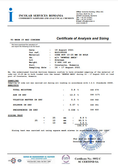 | Net Calorific Value | min 5400 kcal/kg |