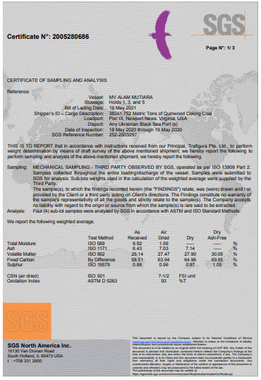 | Volatile matter (Vdaf),% | 1.5% max |